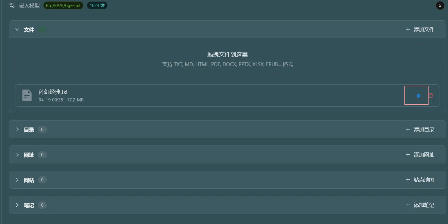 把资料拖进去,蓝点表示正在向量化,根据你资料的大小,可能要等待较长的时间。