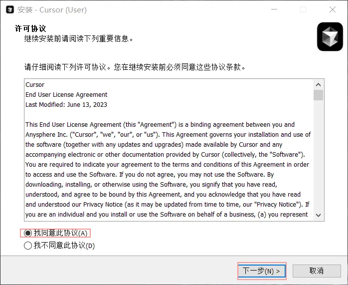 同意协议,点击下一步。