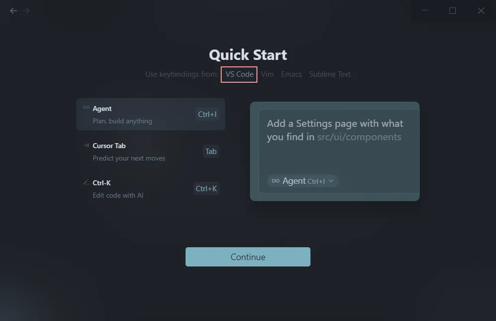 跳过导入 vscode 的设置。