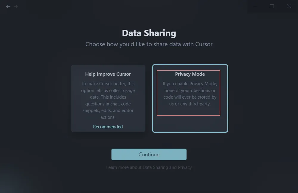 选择 privacy mode,点击 continue。