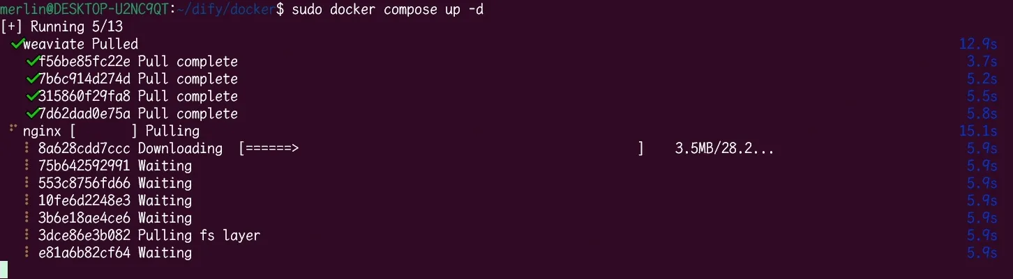 sudo docker compose pssudo docker compose ps -a # 可以看所有的运行情况,包括已经停止运行的访问 dify