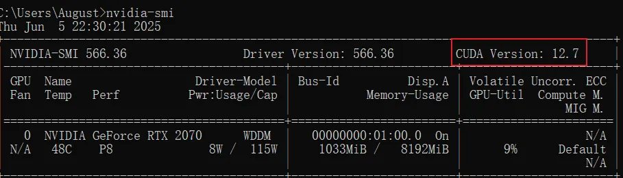 这里的 cuda version 就是支持的最高版本的 cuda,可以安装比它版本低的。