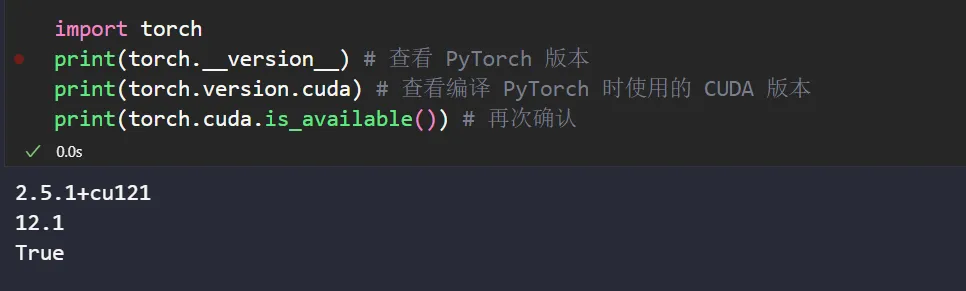 pip3 install torch torchvision torchaudio --index-url https://download.pytorch.org/whl/cu121这里安装的版本是 cuda 12.1