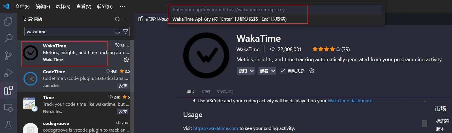 以 vscode 为例子,当然这个 wakatime 支持许多的 IDE 与软件,甚至有能抓取 windows 的。