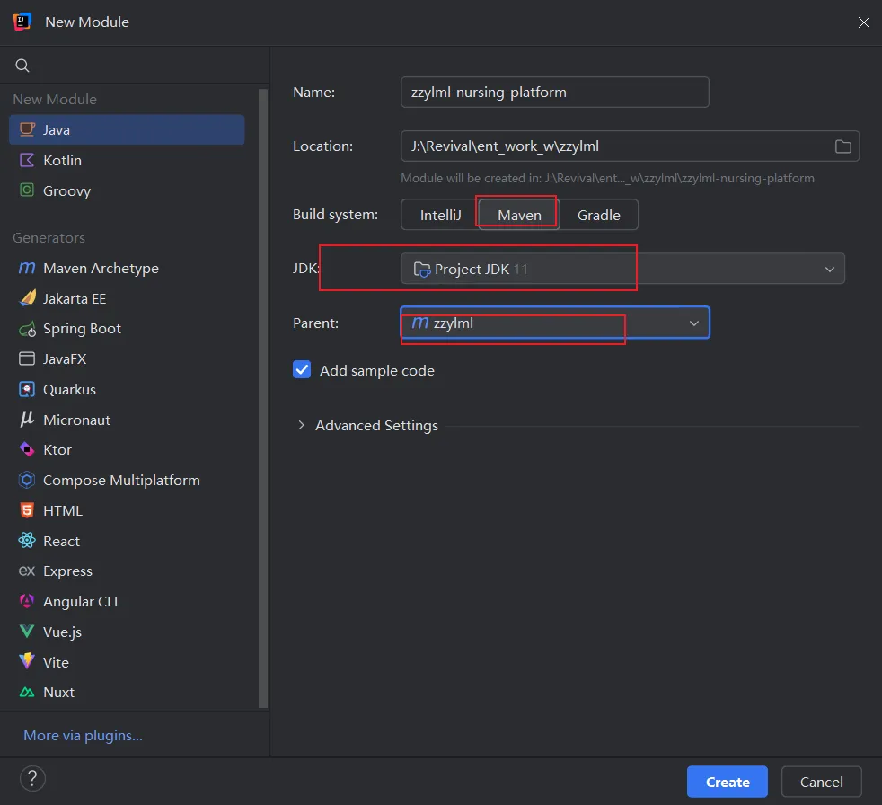 在 root 目录的 pom 添加业务依赖,把新加的模块给加上。
