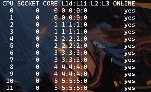lscpu -e