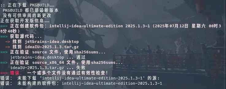 使用 paru 进行安装与更新的时候,有时会遇到使用sha256sums检验没有通过的情况,例如下图所示: