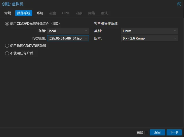 在操作系统中使用 ISO 文件,选择刚才上传的 ISO 镜像。