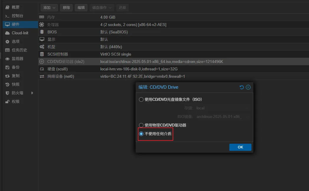 这时候已经彻底安装完了,把 arch 虚拟机关闭。