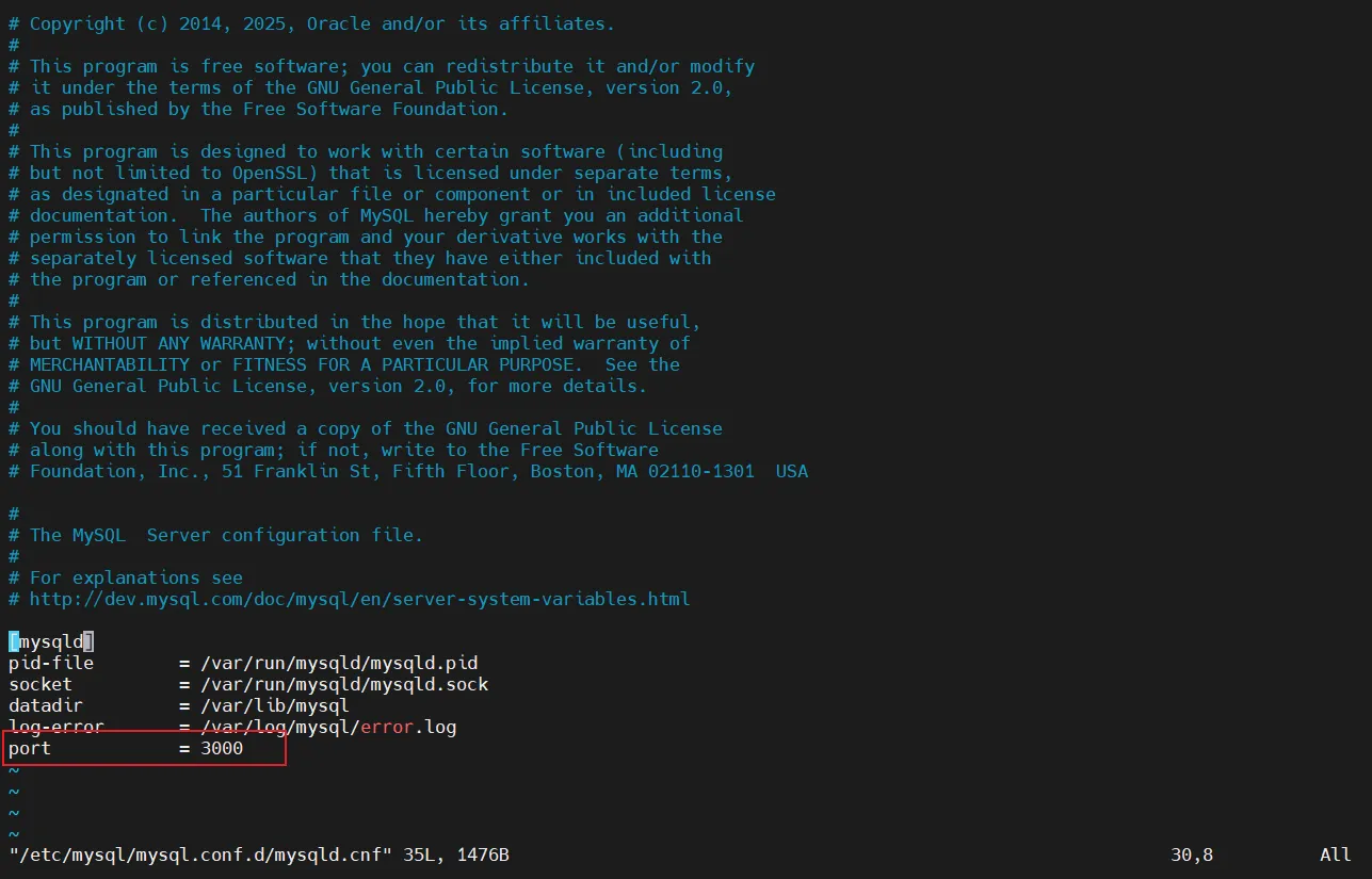 vim /etc/mysql/mysql.conf.d/mysqld.cnf
