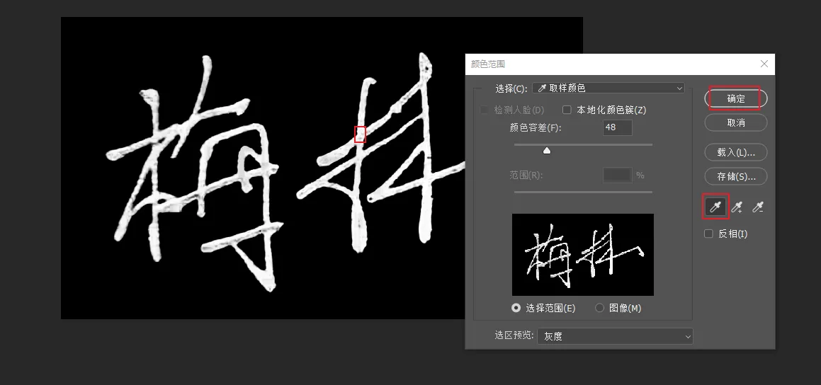 接着用取样器点击一下文字,可以调整颜色容差,接着点击确定。