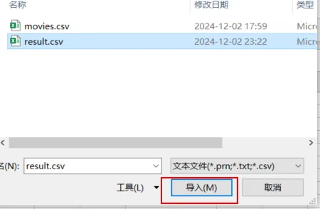 选择你需要的 csv 文件,导入。