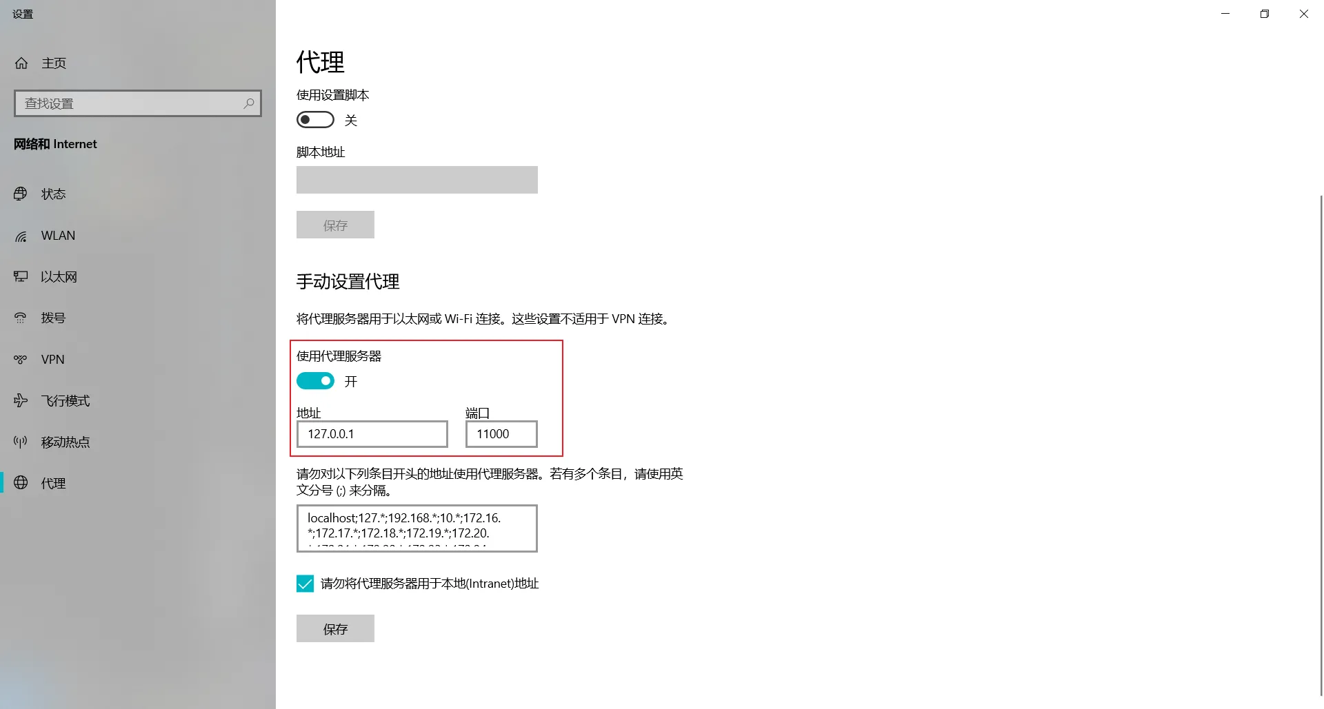 把代理服务器打开,地址改为 127.0.0.1 也就是你的本机地址,端口号改为刚刚跟在 -p 后面的数字。